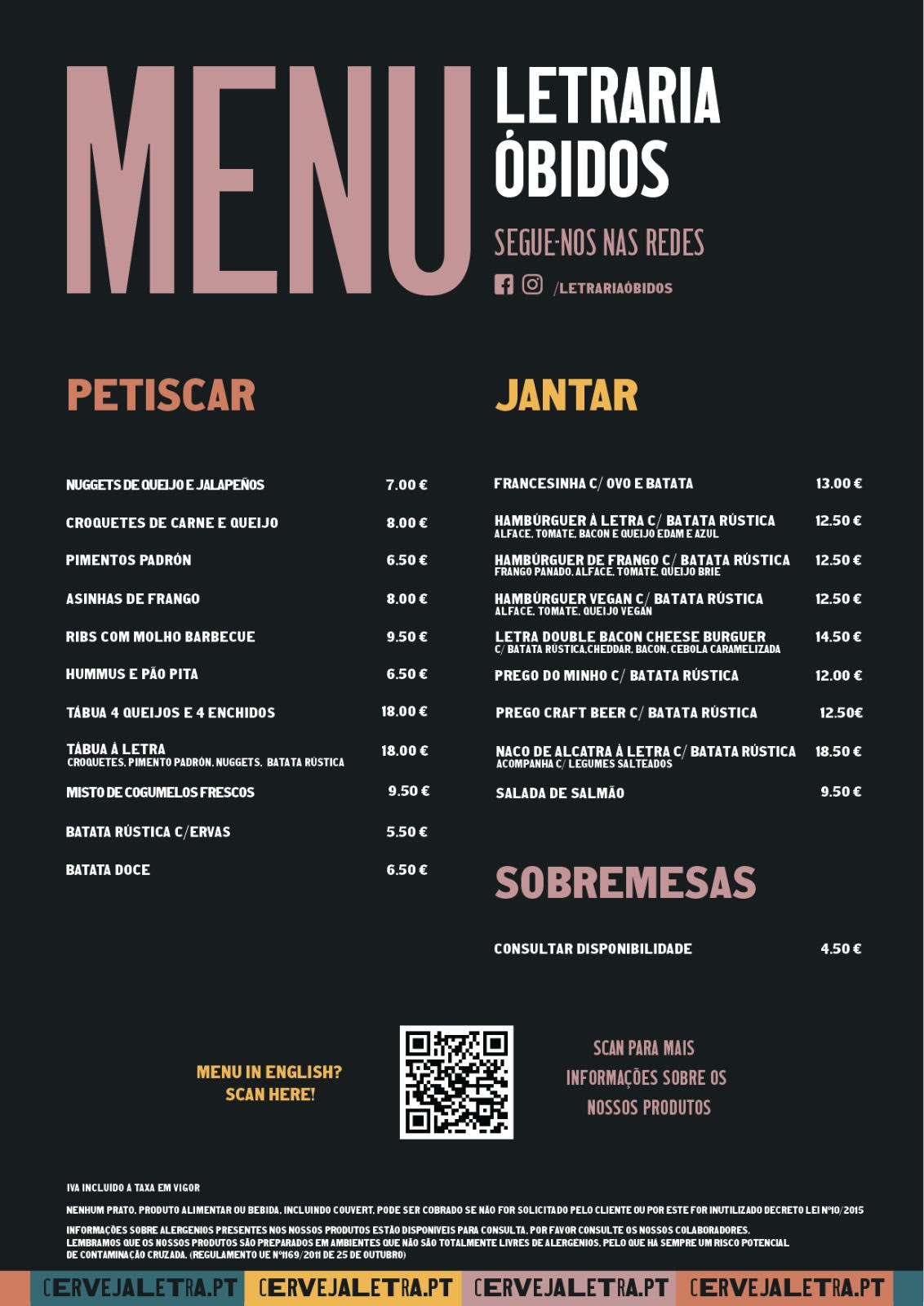 Preços com IVA Incluído à Taxa em Vigor Existe um livro de reclamações no estabelecimento Para prevenção de potenciais alergias, dispomos de ficha técnica com a descrição dos ingredientes utilizados.